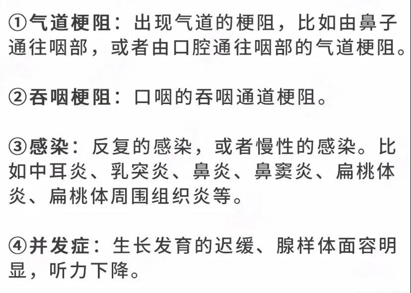 腺样体肥大后,会阻碍鼻部氧气流通,孩子就会打呼噜、张嘴呼吸!出现鼻咽部、口腔、
